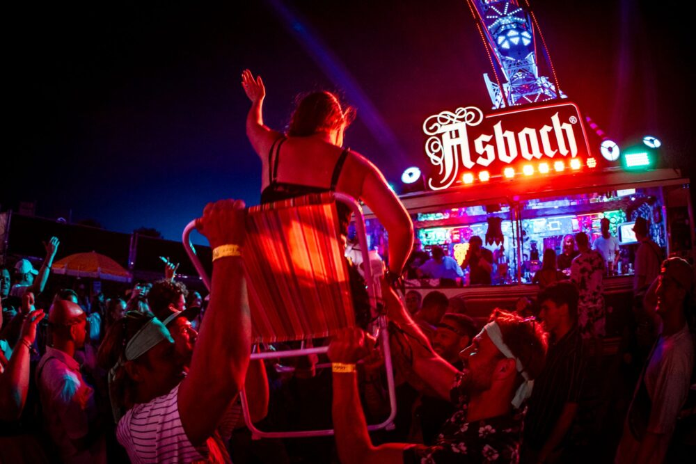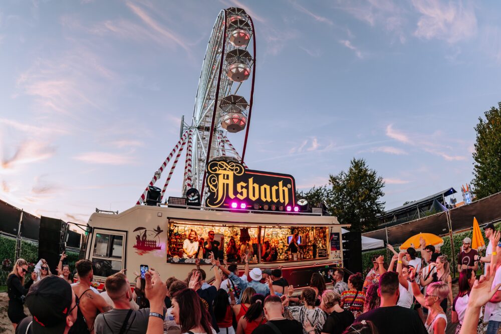 Das Feedback aus der Festival-Szene war so positiv, dass die Verantwortlichen entschieden, dass das UrAltersheim auf Tour geht: das „Asbach Mobilheim“ war geboren – ein neun Meter langes Mercedes-Wohnmobil, das mit viel Liebe zum Detail umgebaut wurde. Der Camper war 2024 unter anderem auf dem Open Beatz in Herzogenaurach und dem Electrisize in Erkelenz vertreten. Doch damit nicht genug; im Vorfeld der Festival-Saison 2025 wurde das Mobilheimkonzept weiterentwickelt zum „Camp Asbach“ – eine liebevoll gestaltete Lounge-Area inklusive des Campers.